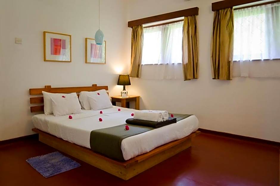 The air-conditioned room has a door leading to the garden. The attached bathrooms comes with hot/cold water and toiletries.